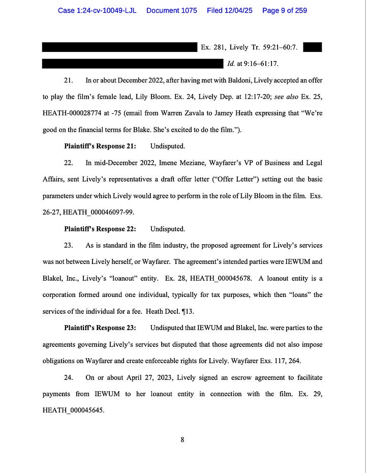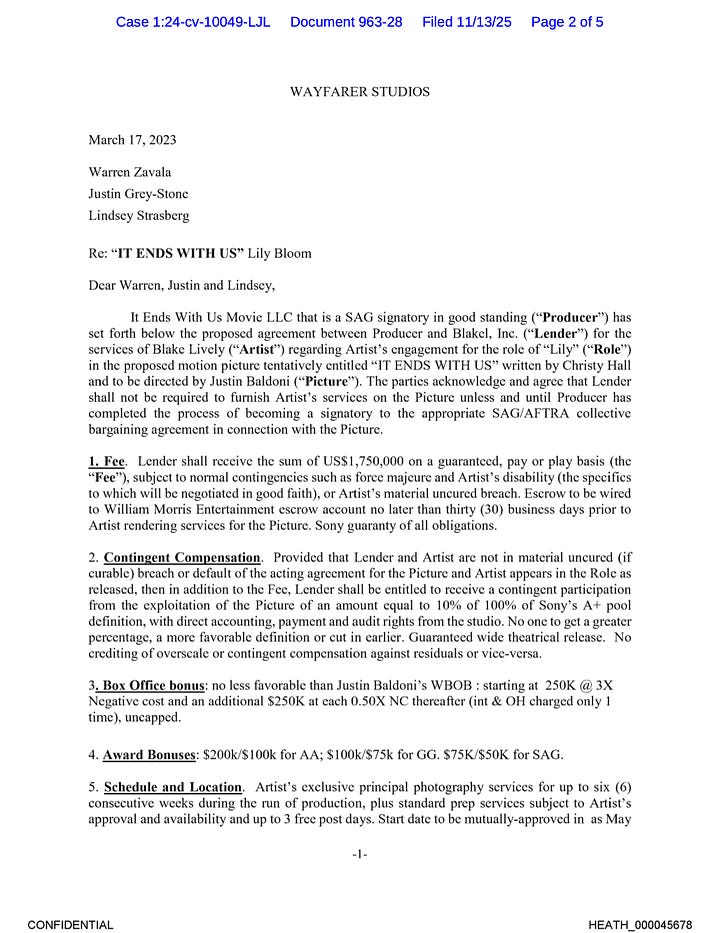 What if I told you that, in my opinion, upon information and belief, Blake fucked herself royally by not signing her Actor’s Loanout Agreement, and that cost her receiving $36.39 million plus in bonuses?