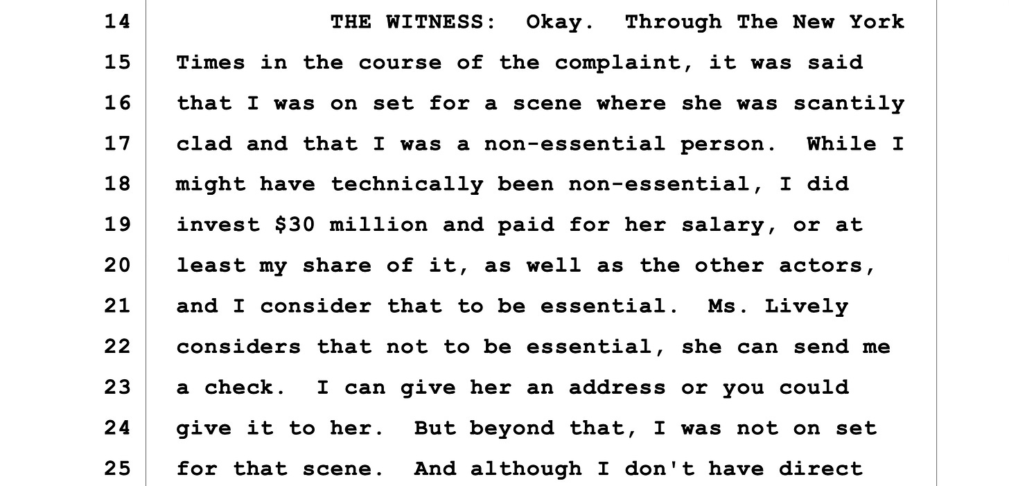 And we know this because Danny Greenberg straight up said in his deposition, I ain’t lying for Blake Lively.