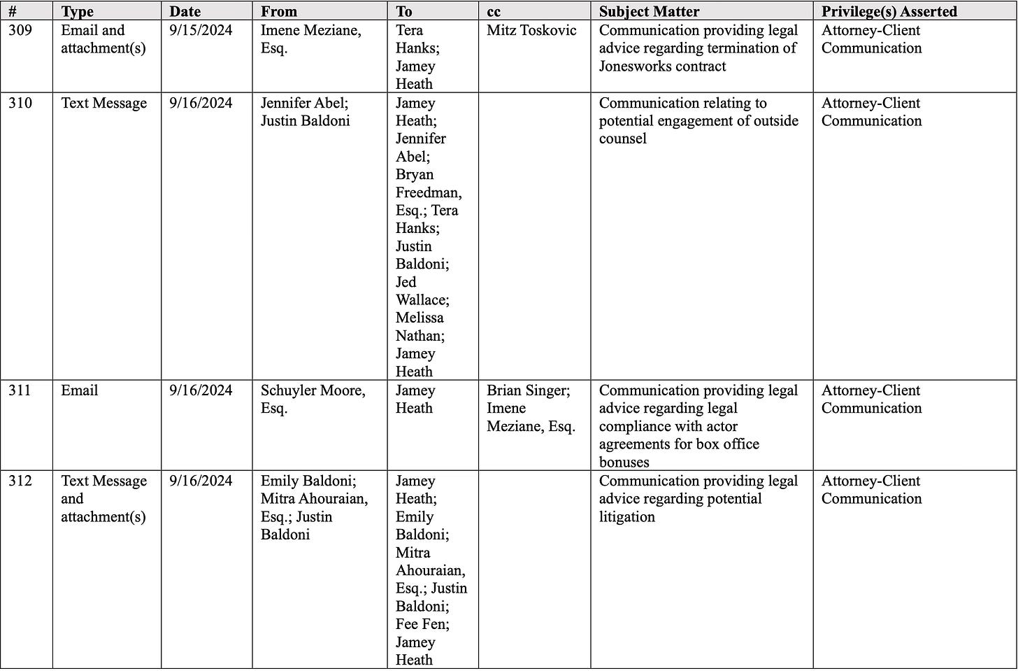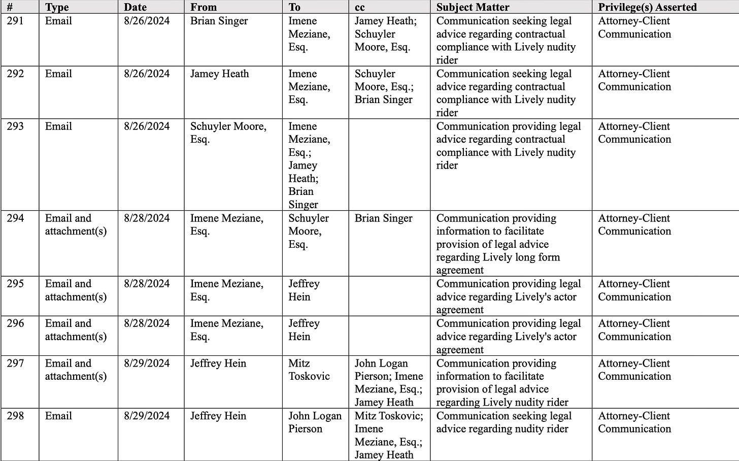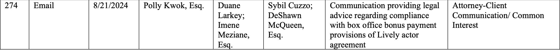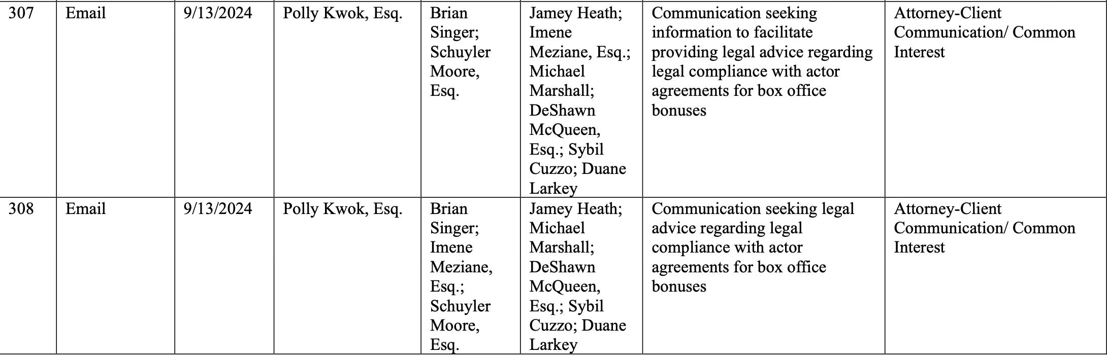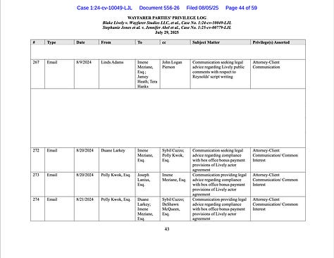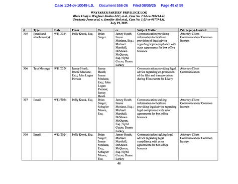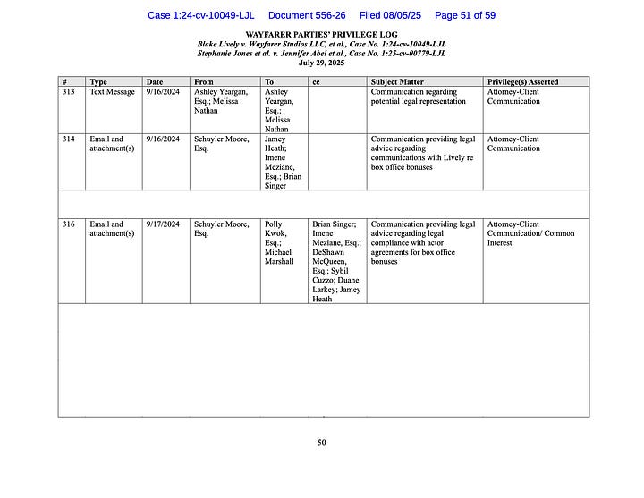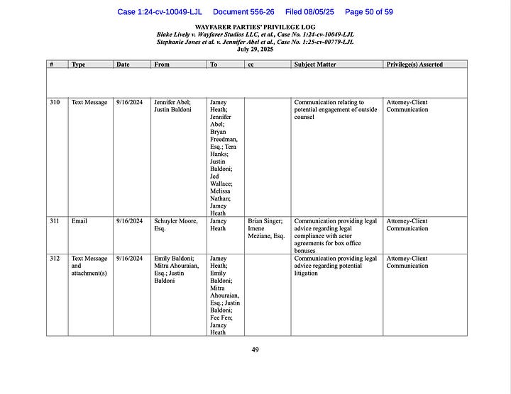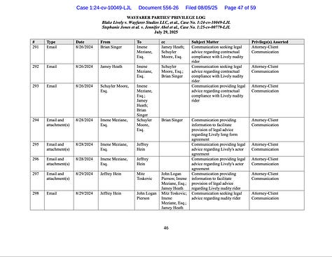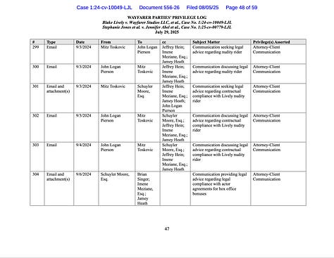 We can surely see the pattern in Wayfarer Parties July 29, 2025 Privilege Log.