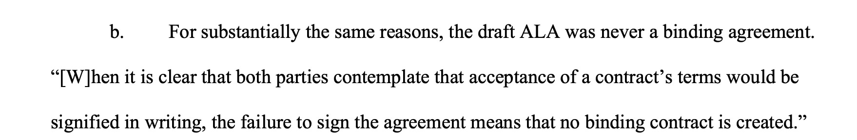 All because she didn’t sign her ALA. Shapiro’s MSJ even reads punchier when reading it with this knowledge in mind.