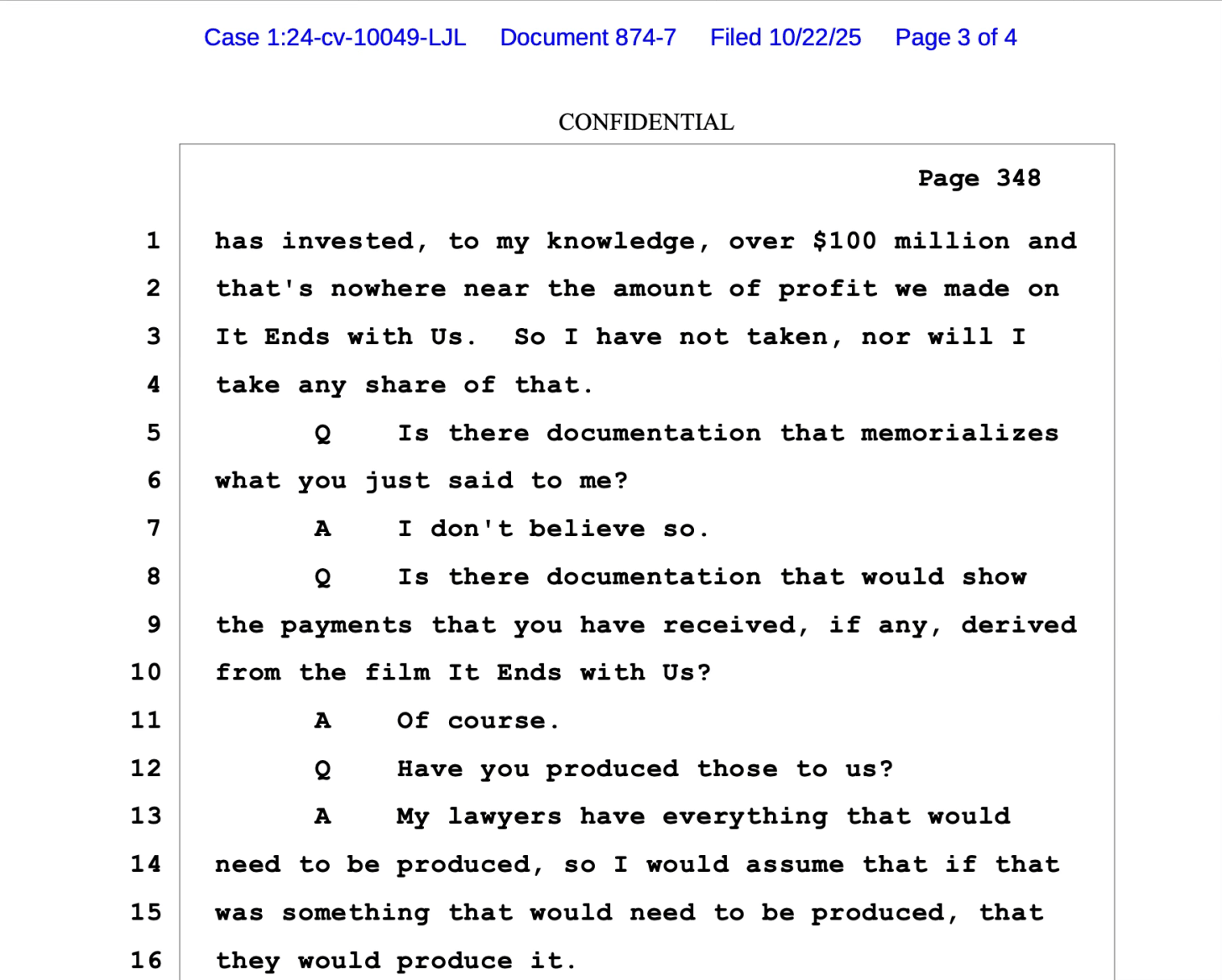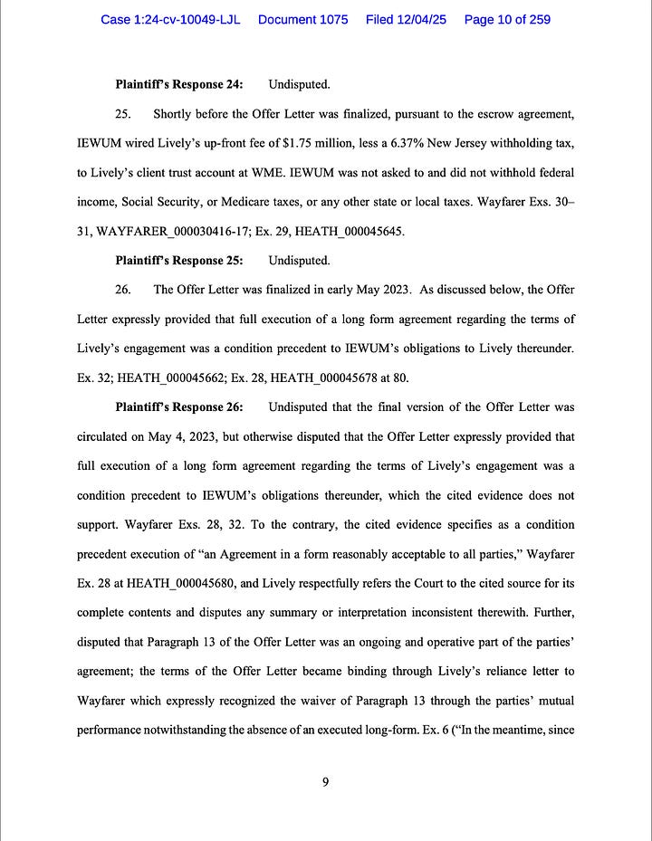 First thing out of the gate, we now know that I was categorically right and Blake Lively and Esra Hudson were lying in their filings—or at the very least, stretching the truth.