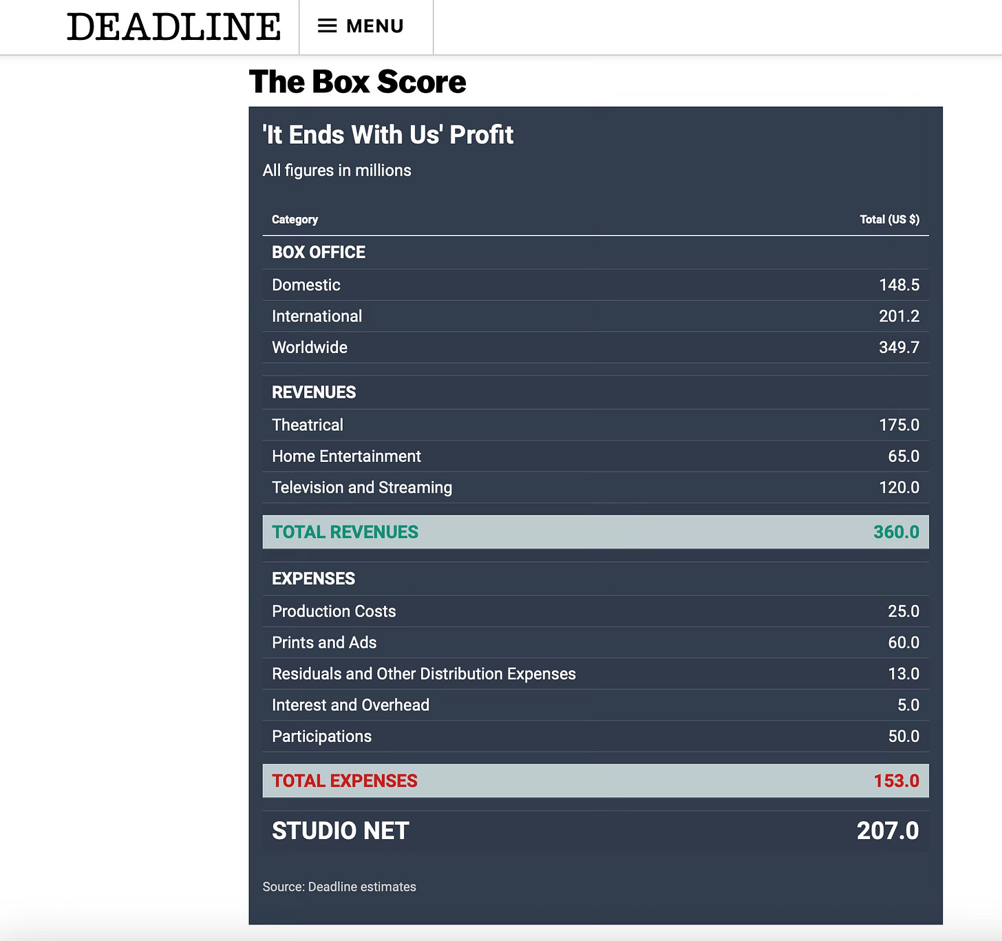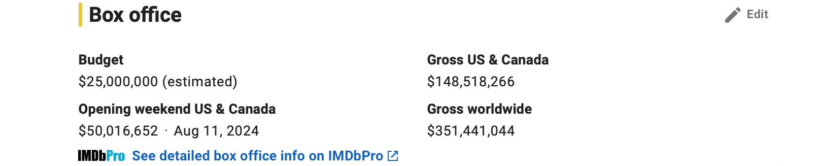 IEWUM LLC then goes on to make $351.4 million in box office revenue and some other undisclosed amount in streaming revenue.