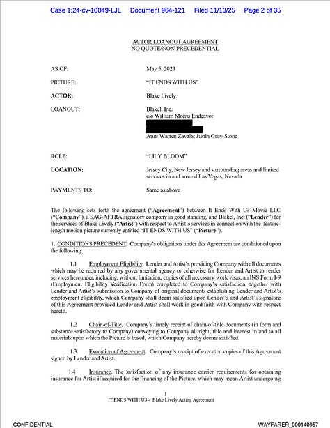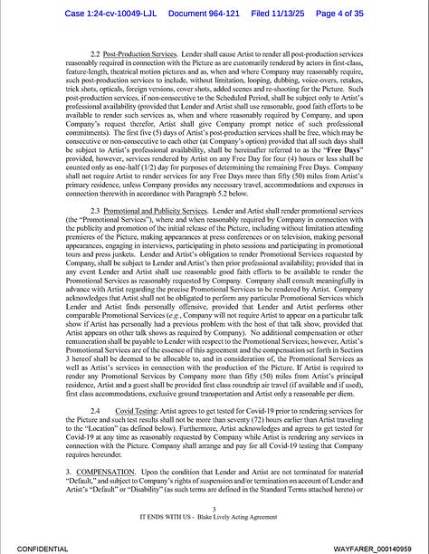 2. Relevant excerpts of Blake Lively’s Actor Loan-out Agreement (ALA)