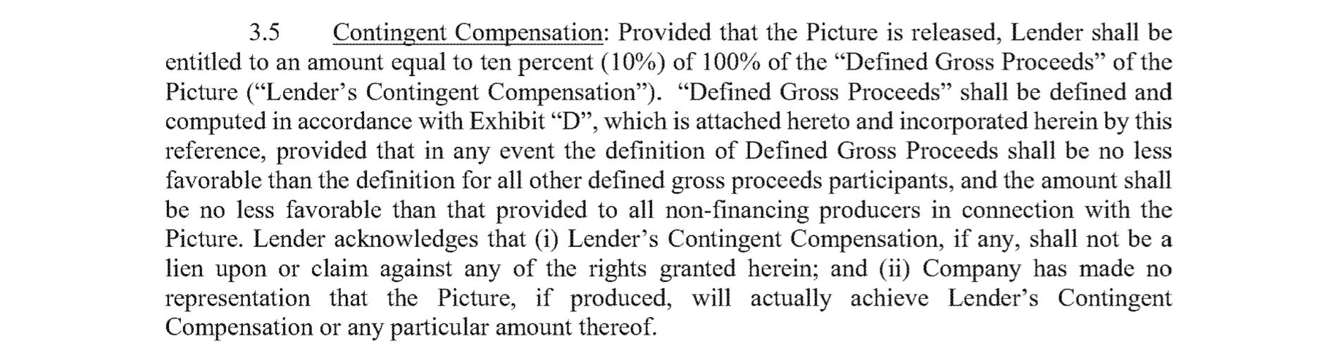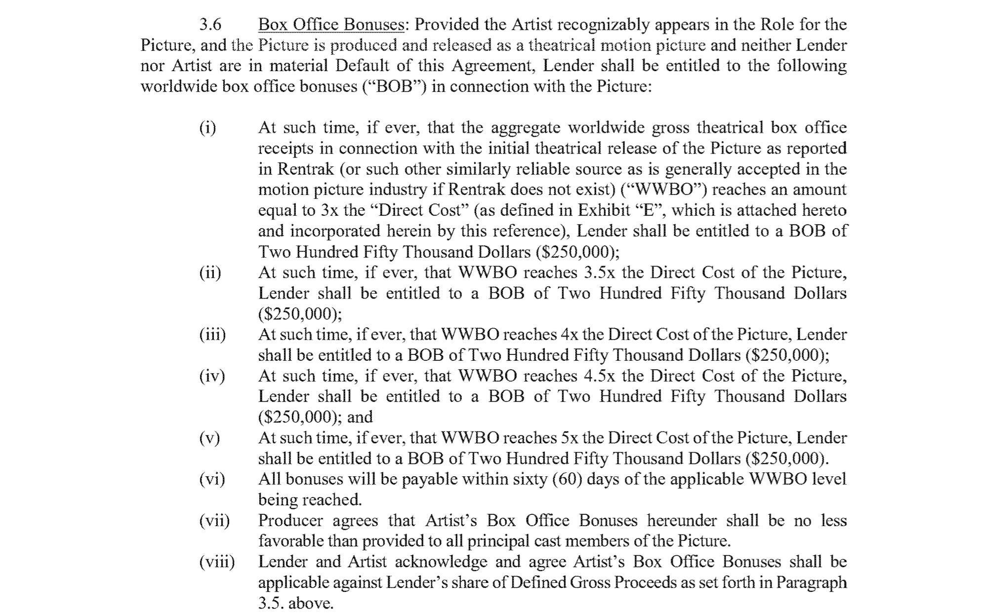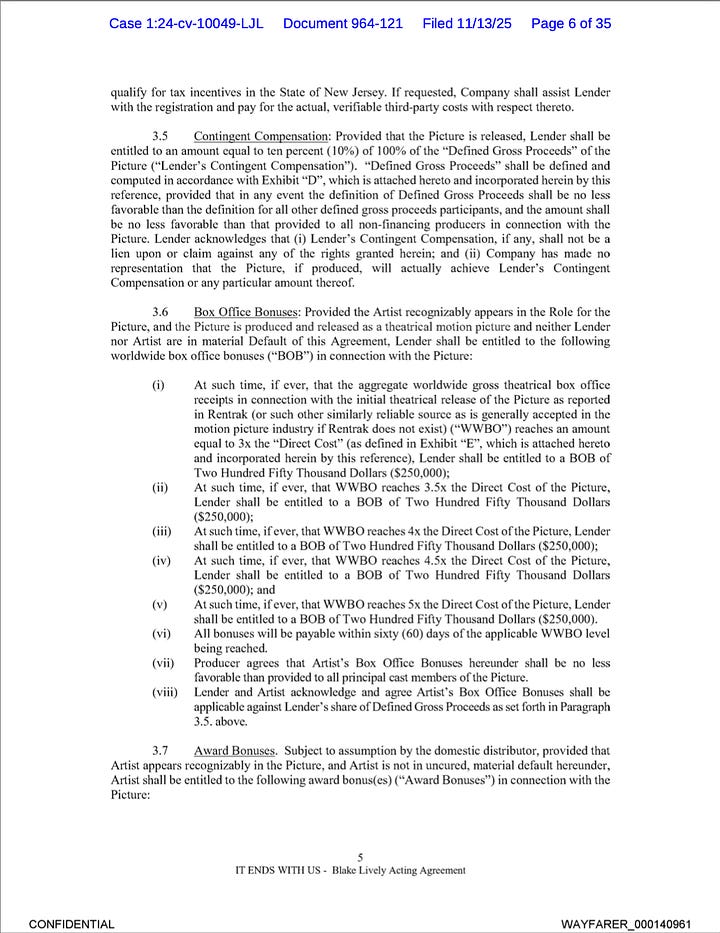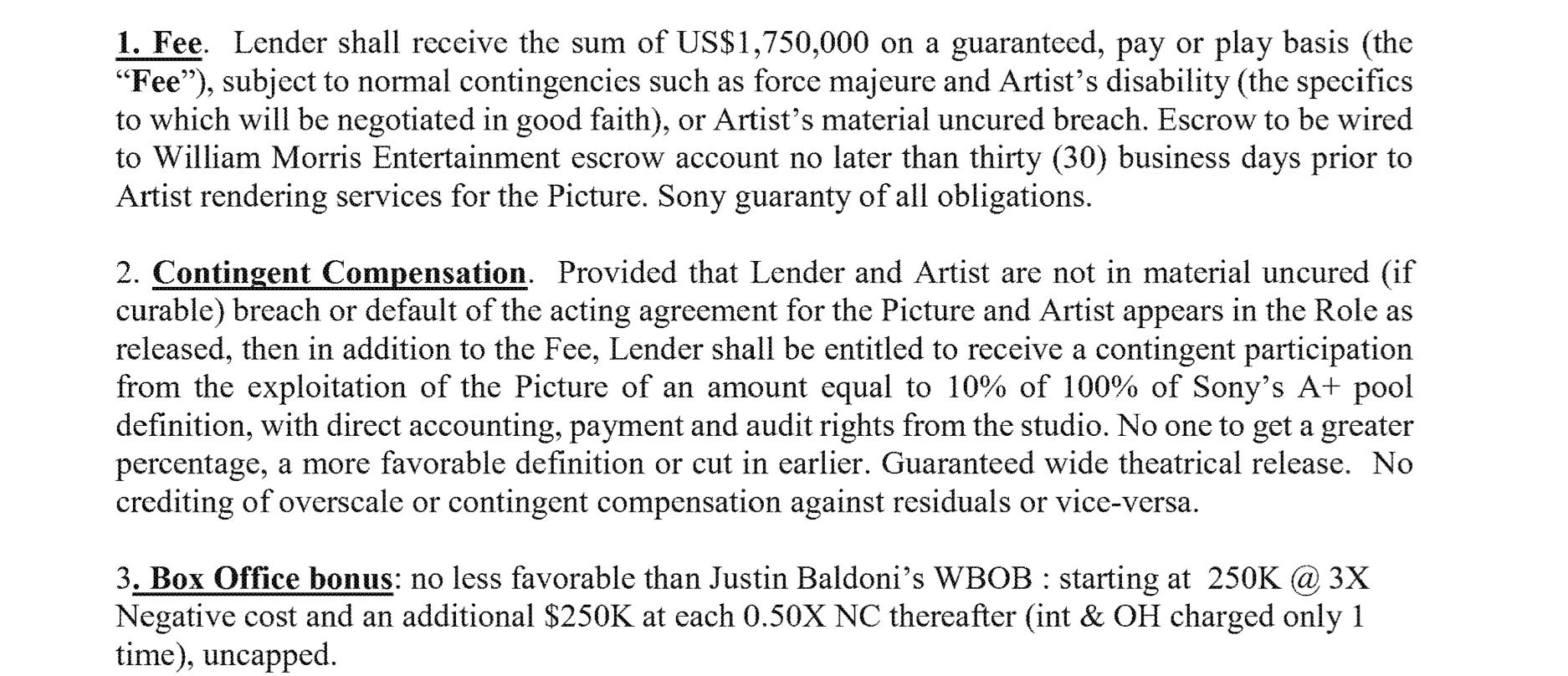 In addition, there is also the box office bonus that entitles Blakel Inc to at least $1.25M and Blake herself as the actor to another $1.25M of the Defined Gross Proceeds.