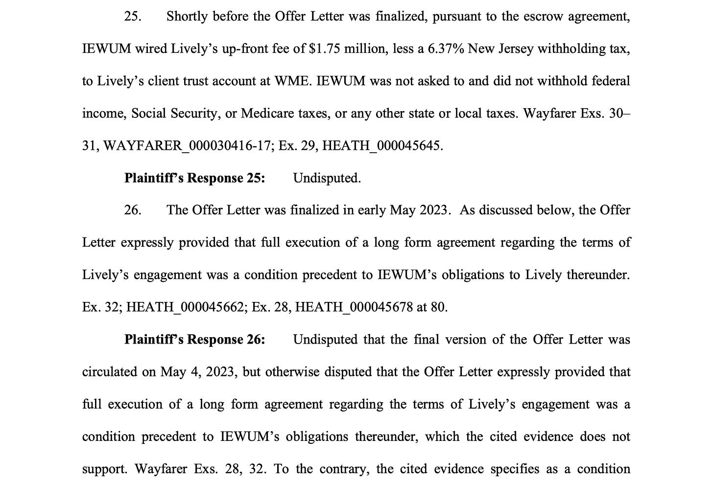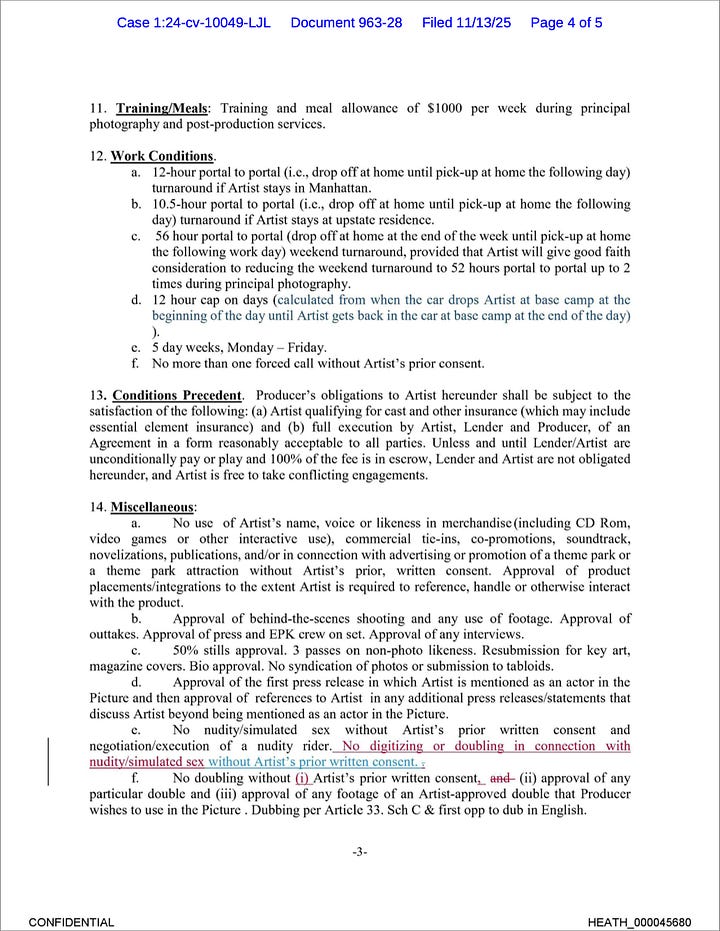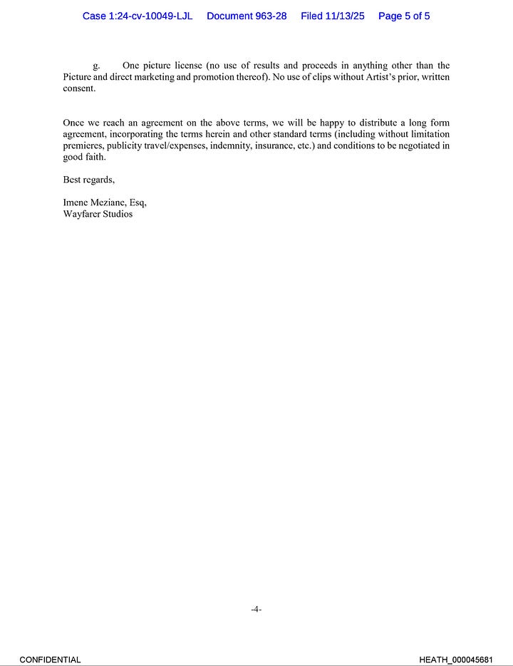 And then you also see Wayfarer CFO Brian Singer bringing up compliance with her nudity rider. Because the lawyers be lawyering all throughout that time period, and every document was being peered at closely and dissected with a fine-tooth comb.