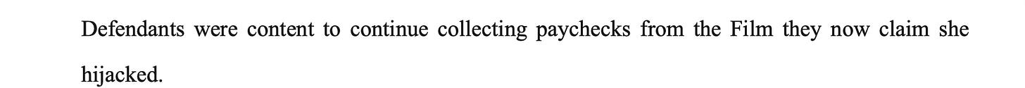 She tried to hijack a film and succeeded in mean-girling the actual force behind the movie and the reason the movie exists today. And all she got paid was $1.75M upfront fee and the $1.25M comparable box office bonus, as specified in her Offer Letter. Meaning she most likely got paid $3M in total.