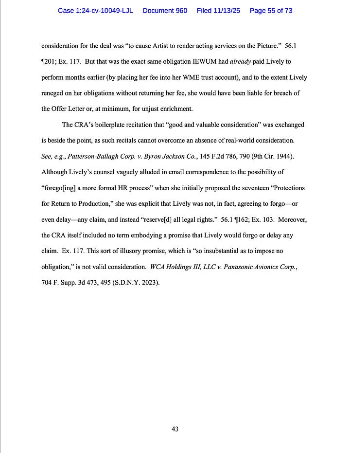 This is amazing. Blown AWAY. Well freaking done. The amount of absolute shit they've thrown at Justin and Wayfarer because of Dumb Dumb using an unsigned contract to hold them hostage to every demand for only 16 days on set is WILD and so simply unethical (IMO) that I can't believe it's allowed to continue for so long. It makes some $en$e but not to the degree they've used it to destroy their entire careers over. Not only did they kiss $37 million goodbye but their legal fees have surely doubled (more?) this amount and future earnings completely decimated it. Karma is glorious…and always shows up in the end.